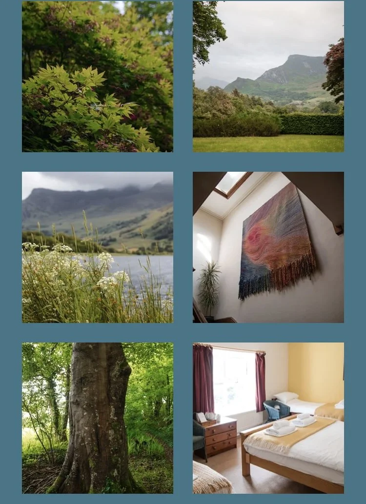 Our venue is set amongst 18 acres of gardens, meadows and woodlands with views of Eryri mountains and Llyn Nantlle. The space consists of comfortable twin rooms with shared bathrooms, our private Yoga studio and communal places to relax. All food is freshly prepared on site each day and is made with locally sourced and home grown biodynamic produce. The kitchen team take pride in offering seasonal, nutritious food made with love, care and imagination.